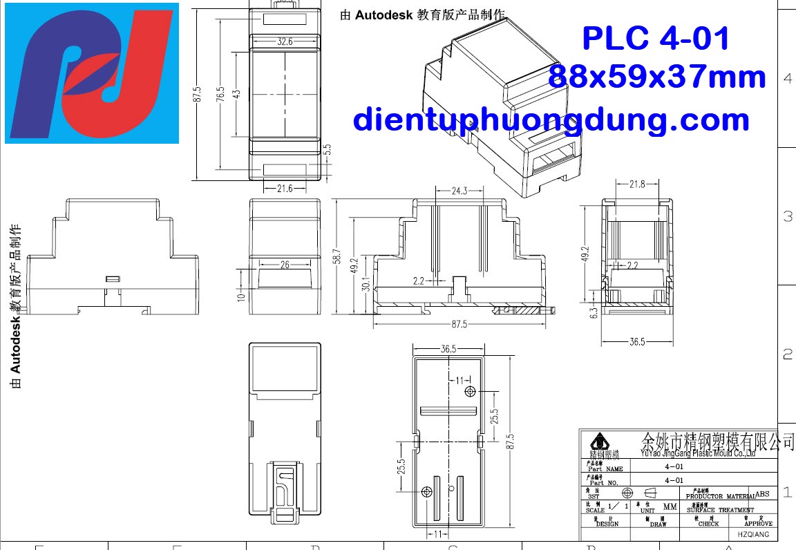 Kích thước sản phẩm hộp nhựa PLC 4-01-5 88x59x37mm