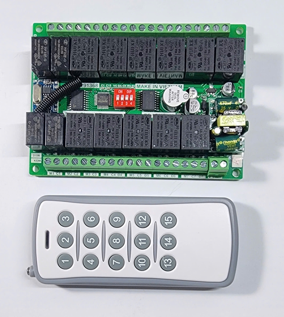 - Tay điều khiển 12 kênh + Bo mạch nhận 12 kênh - nguồn cấp 220VAC - không vỏ: 370k