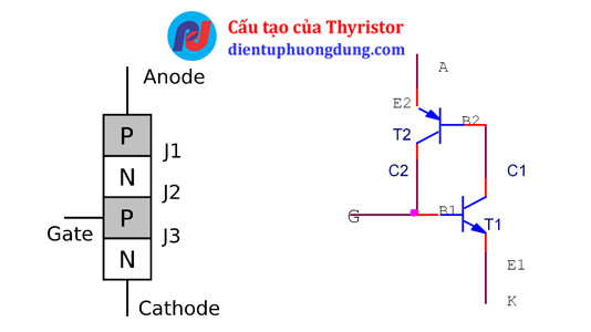 Thyristor có thể xem như tương đương hai BJT gồm một BJT loại NPN và một BJT loại PNP ghép lại.