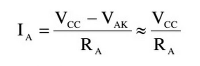 Theo nguyên lý này dòng điện qua hai transistor sẽ được khuếch đại lớn dần và hai transistor chạy ở trạng thái bão hòa. Khi đó điện áp VAK giảm rất nhỏ (≈ 0,7V) và dòng điện qua Thyristor là: